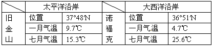 (1)一月气温旧金山高于诺福克,七月气温诺福克反而高于旧金山,为什么?