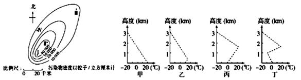 【小题2】观察该市4月份气温垂直分布图,甲乙丙丁四图中大气污染最严重的是( )