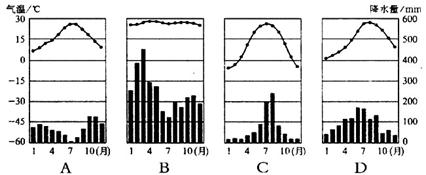 4、单选题 下列四种气候类型中,表示亚热带地中海式气候的是:(???)