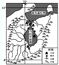 3、单选题 马拉开波湖的北部由一条狭窄水道与海洋相连。湖区周围为世界上最集中的产油区之一,有“石油湖”之称。读右图,完成下列小题。