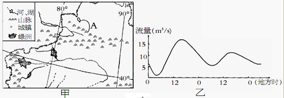 2、单选题 下图中甲为我国某地区区域图,乙为A河流上一水文站测到的某月连续两天流量随时间变化曲