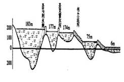 4、单选题 下图为北美五大湖入海通路剖面示意图,此通路为美、加两国国界线,读图回答题。