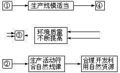 2、单选题 在“人类与环境关系协调发展示意图”中,数码①——④表示的含义依次是
