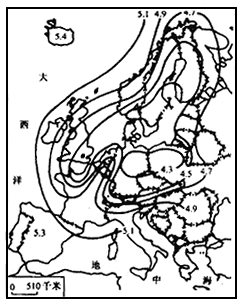4、综合题 读欧洲某年降水PH值等值线图,完成下列问题。