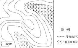 5、单选题 右图示意我国黄土高原某地林木的分布状况,图中相邻等高线之间高差均为30米。读图回答下列小题。
