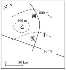 4、单选题 下图所示区域位于某大陆西岸,结合图回答下列各题。