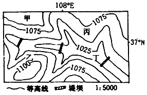 4、单选题 下左图为某地等高线地形图,右图为此图甲、乙两点间地形剖面示意图,据此回答下列各题。