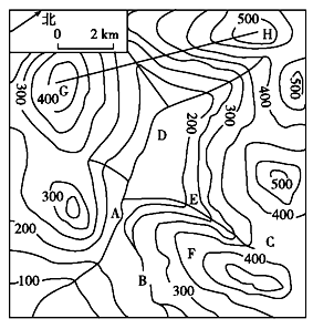 (4)若G、H两地图上距离为3.6 cm,则两地实地距离为 。(2分)