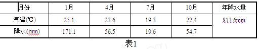 2、综合题 下图海港城市基隆年降水量在3200毫米以上,年降水日数为214天,素有中国“雨港”之称。