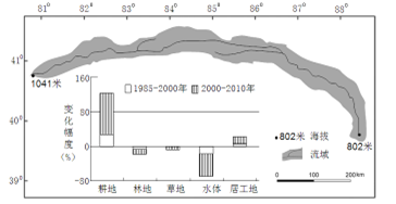 1、单选题 下图是我国某河流干流区位置及不同土地利用类型的变化特征图,读图完成小题。