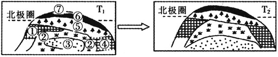3、单选题 读理想大陆自然带(局部)演变趋势图,回答1~2题。