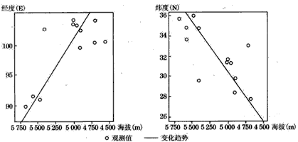 1、单选题 下图表示长江上游地区雪线高度随经向和纬向的变化趋势。据此完成1—2题。