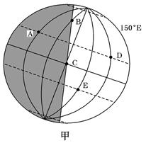 5、综合题 甲图为“某日地球光照图”,读图回答下列问题。(18分)