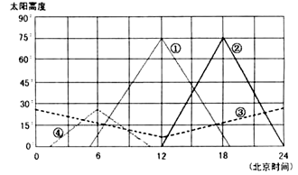4、单选题 读某日不同地点太阳高度图,完成下列小题。