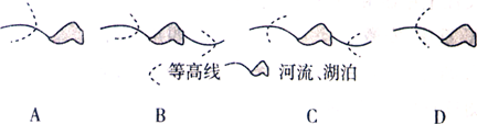 小题2:纳木错为内流湖,故只有河流水源补给,没有河流水流出,根据河流流向与等高线的凸向相反判断D为内流湖。
