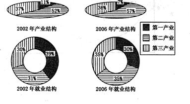 4、单选题 近年来江苏省产业结构和就业结构发生了明显变化,读图,回答题。
