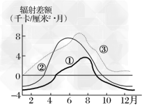 5、单选题 地面通过吸收太阳辐射而获得热量,同时通过地面辐射的方式而散失热量。地面吸收太阳辐射与地面向外辐射之差额,称为地面辐射差额。读“三个地区地面辐射差额的年变化图”,回答1~2题。