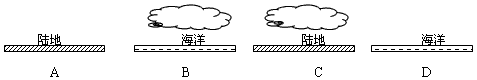 4、单选题  下图所列的四地均位于纬度相同的中纬地区,其昼夜温差最大的是