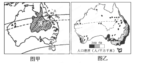 (3)读图乙,分析澳大利亚人口分布特点及原因。(4分)