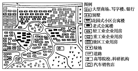 (2)C、D、E中属于低级住宅区的是________,其在城市中的一般分布规律是__________________。