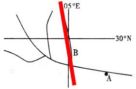 小题2:图中B支流的源头和该支流与干流汇合处同时迎来日出,即两地同在晨线上,同时太阳光线与晨线垂直(如图),判断太阳直射北半球——北半球夏季,南半球冬季。综上判断选A。