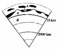 本题解析:试题分析:小题1:读图,c、d之间的界面深度是33千米,所以是莫霍面。教材中所说的,地震波穿过莫霍面波速加快,是由上向下传播时,题目中的地震波是自下而上通过的c、d之间的界面,所以波速是减小的,A对。B错、C、D错。
