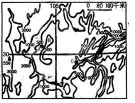 (1)根据B处闭合等高线的分布“高于高值”判断,B处海拔较高;根据该地的经纬度位置和等高线分布判断,AC之间处于四川盆地。该地主要的农业生产是水稻种植,故属于水稻种植业。
