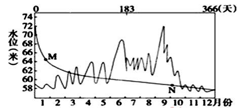 3、单选题 水位是指河流某处水面的海拔,一年中等于和大于某一水位出现的天数之和称为历时。读“某河流某观测站测得的水位过程线与水位历时曲线图”。