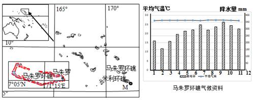 5、单选题 马绍尔群岛是在古老玄武岩基岩上形成的珊瑚礁,以环礁居多,科学家研究发现位于图中M处的诺克斯环礁1905年突然消失,百年后开始“复活”,新的小岛在废墟中重生。据此回答下列各题。