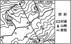 (1)图中白水河的流向大致为 ;甲村与龙山之间的温差T的范围是 。D点的海拔是 米。