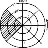 3、单选题 图中斜线部分表示1月14日,非斜线部分表示1月15日,每条经线之间的间隔相等,箭头表示地球自转方向,据此回答1--3题。