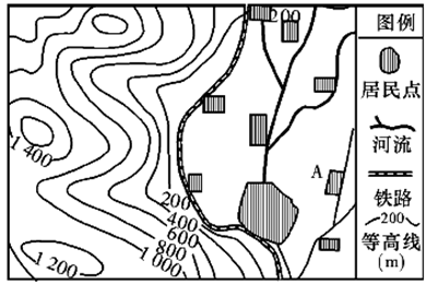 【小题1】图中铁路主要分布在平原地带,铁路线弯曲的主导因素是避开河谷。
