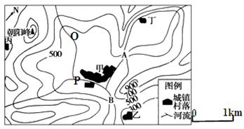 (3)某同学在登上当地最高的朝阳峰时,看不到甲、乙、丙、丁中的哪个村镇?请简述理由。看不到_____,理由是 。(2分)