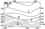 据图可知,甲地陡崖的崖底的海拔高度介于400~500之间。乙为山谷处的陡崖。