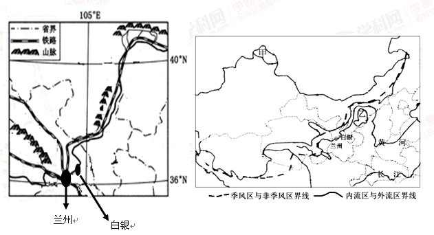 (1)图中甲、乙两地既属于季风区,又属于内流区的是???????。(2分)