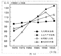 本题解析:1.由图中信息可以判断,人均粮食拥有量略有增长;由图上信息无法判断世界人口的变化;灌溉面积指数在不断增加,可以判断水旱灾害的频率在下降;化肥的投入指数先增加后减少,可以判断农业生产环境在改善。