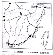 1、单选题 我国正在建设杭州一宁波一福州一厦门一深圳的沿海高速客运铁路,它对东南沿海的发展将起到促进作用。图示为我国东南部部分铁路网图。读图回答下列各题