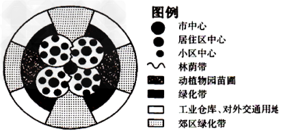 3、单选题 读某地区生态园林城市模式图,回答