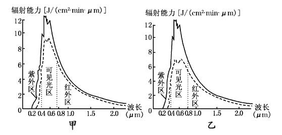 【小题1】到达地球大气上界的太阳辐射是相同的,各地获得的太阳辐射的波长也相同,A、C错误;而各地大气对太阳辐射的削弱能力不同,从图中可以看出,实际到达地面的太阳辐射状况是甲地大于乙地,B正确,D错误。