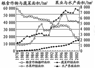 4、单选题 读我国东南某市辖区1978—2002年农业内部各业用地数量变化图,完成下列问题。