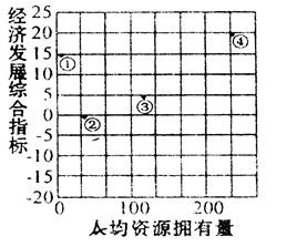 本题解析:从四个国家经济发展水平看,美国和日本是最高的,结合人均资源拥有量,则④为美国,①为日本;巴西和印度经济发展水平较低,但因印度人口众多,人均资源拥有量少,故②为印度,③为巴西;四个国家中只有日本的首都东京其政治职能与经济职能尚未分开。