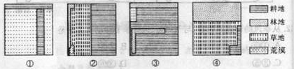2、单选题 下面为四国土地分布模式图,读图回答16—18题。