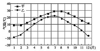 2、单选题 某种农作物生长期约2个月,前期(1个月)最适宜温度15℃——18℃,后期(1个月)最适宜温度12℃——14℃。下图是种植该作物的甲、乙两地气候资料,根据所给材料回答下列各题。