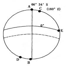 点评:本题难度较小,解答本题的关键是:(1)根据地球自转方向确定南北半球。(2)确定地方时。过晨线与赤道交点的经线地方时是6:00,过昏线与赤道交点的经线地方时是18:00,与晨线(昏线)和赤道交点相差90°的经线,在昼半球的经线地方时是12:00,在夜半球的经线地方时是0:00。(3)根据现象确定日期。①晨昏线经过南、北极点(与经线重合)时:可判定这一天为3月21日或9月23日,节气是春分或秋分。②晨昏线与极圈相切时:北极圈及其以北出现极昼(南极圈及其以南出现极夜),日期是6月22日前后,北半球节气是夏至;北极圈及其以北出现极夜(南极圈及其以南出现极昼),日期是12月22日前后,北半球节气是冬至。