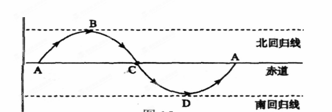 (2)A、B、C、D四点中,正午太阳高度角最大的是 ,白昼最长的是 ,线速度最大的是