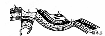 (5)图中B、C、D四处,属于背斜的是 ,属于向斜的是 ,属于断层的是 。