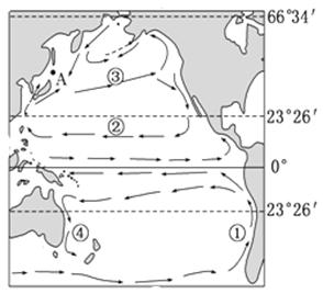 (2)②③代表的洋流中,主要受东北信风吹拂而形成的是_ __。(2分)