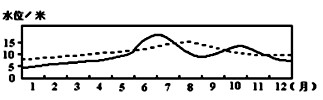 本题解析:小题1:水库可以调节河流的径流量,所以虚线表示修建水库后的河流水位变化,最高水位出现在7-8月。所以本题选择C选项。