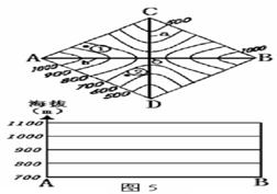 (3)在图5的下图内画出沿AB线的垂直剖面图。(2分)