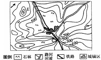 (3)假设图中城市的海拔高度为 400米,当城市温度为32℃时,山峰E的温度不会高于????????????。(海拔每升高100米温度下降0.6℃)